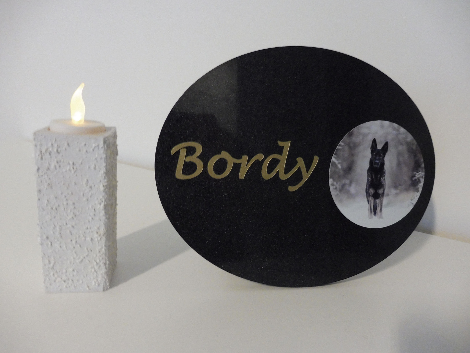 - Voľba Vášho textu: meno Vášho zvieracieho priateľa, dátum narodenia a úmrtia, alebo krátku spomienku či citát
